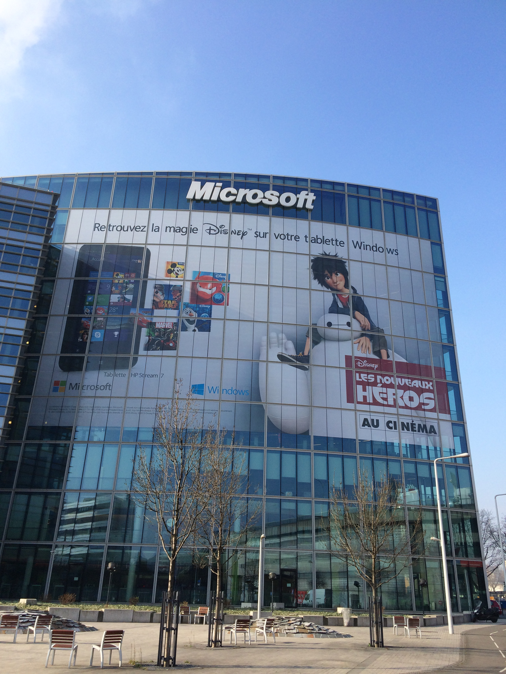 Habillage façade siège Microsoft France - Bâches grand format - Covering Bus - Photocall - Habillage Publicis Drugstore Champs-Élysées